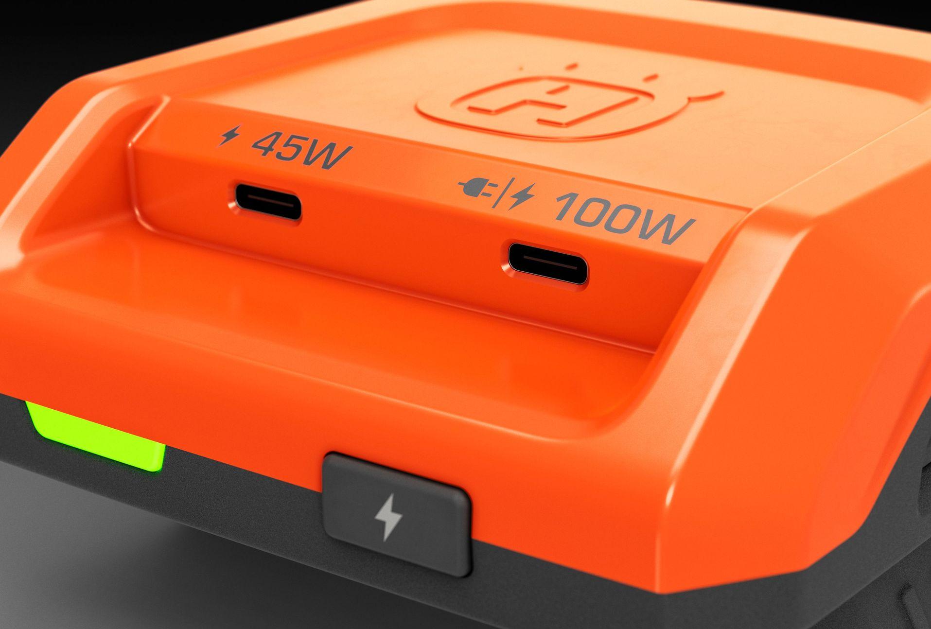 Laad overal uw elektrische apparaten eenvoudig op door gebruik te maken van de USB Lader van Husqvarna. beter dan een normale Pouwer bank.